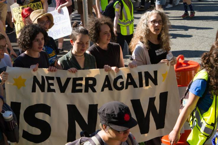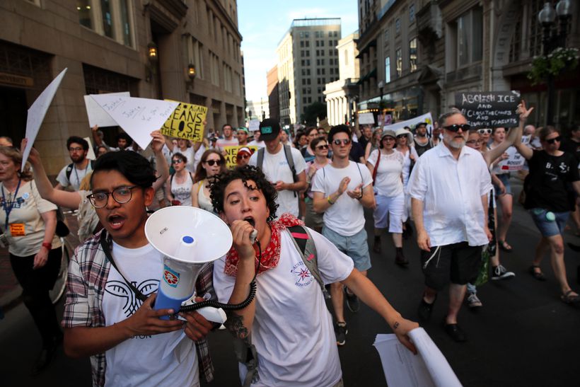 The city of Boston continued to lead the fight when around 1,000 Jewish activists and their supporters shut down traffic in the heart of the city on the night of July 2nd, chanting the slogan “Never Again!” One activist told the Boston Globe, “For Jewish activists who are using the phrase ‘Never Again,’ it’s because we know what happens when we stand by and allow atrocities to unfold without speaking out.”