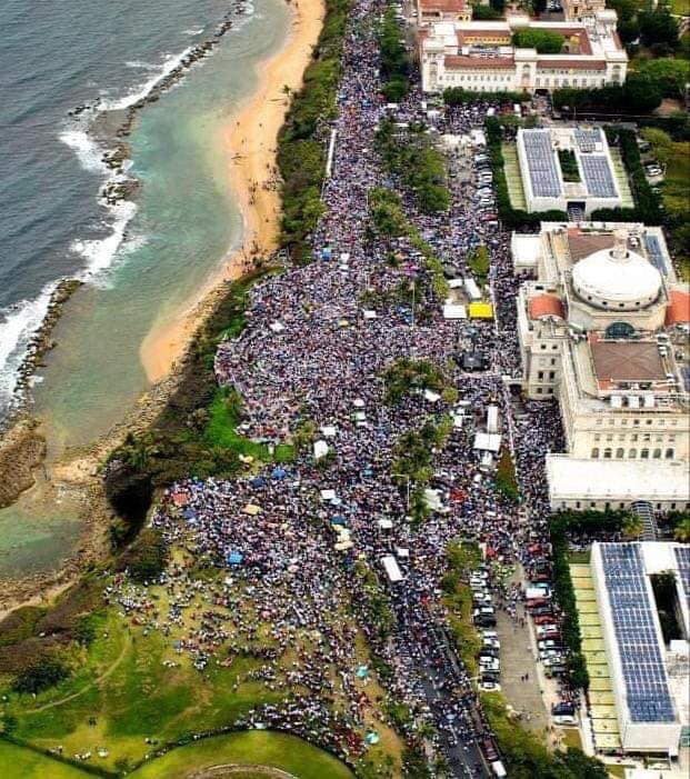 Things are moving at a fast pace. Last night, workers unions joined the protest by organizing a massive demonstration in front of La Fortaleza, the governor’s mansion and yet again made it clear that they would remain there until he stepped down. This time around, there was no violence and riot police did not charge with tear gas. Perhaps, the strategy of using undercover agents to infiltrate the protests in order to turn public opinion against the demonstrators (as alleged by the ACLU) is not working anymore. As this article is being written protests are spreading to Ponce and Caguas. What this movement has done is to delegitimize a corrupt ruling class that had bet on privatization and austerity. This was in a country already living under the oppressive rules of a colonial power as represented by the Junta, appointed by the United States Congress, not the people of Puerto Rico.