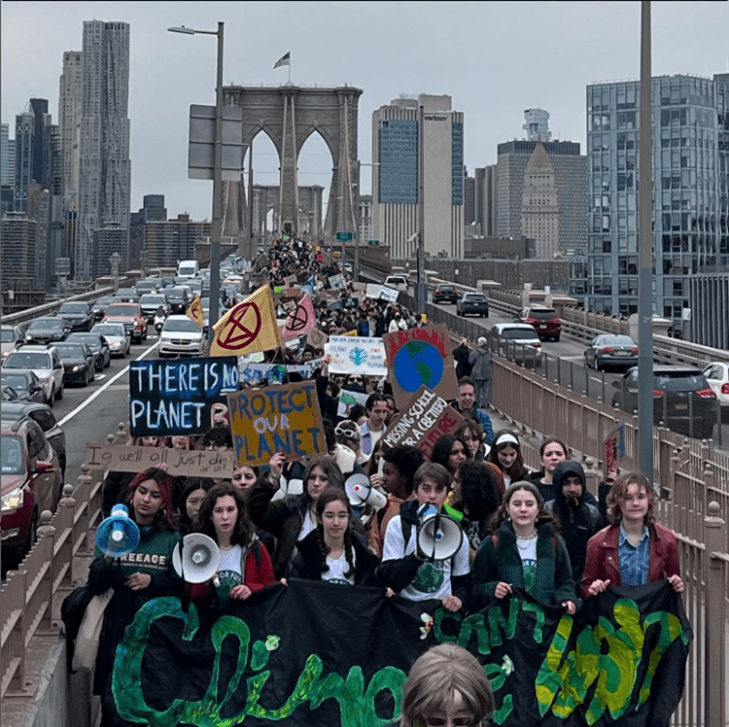 Friday, March 3rd, we marched as part of another youth “Climate Strike” organized by Fridays For Future. Worldwide, hundreds of thousands of students walked out of school in dozens of countries, including US cities. In New York City close to a thousand marched across the Brooklyn Bridge chanting “hey, hey, ho, ho, fossil fuels have got to go.” A concluding speaker from Fridays for Future told the crowd to not back down from what we want, and not to be afraid of words like “socialism.” Students struck and demonstrated throughout Germany, with thousands rallying in Berlin, and transportation workers, already striking in Germany, expressed support. Unions were also part of demonstrations in Aotearoa / New Zealand and Australia, though not striking.