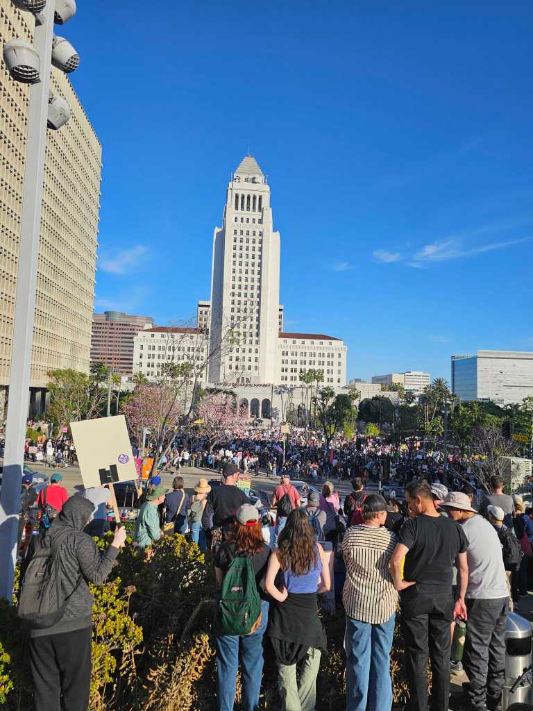 There were around 300 people in attendance at the protest. Much of the rally expressed mainstream liberal politics, about how we need to “protect democracy.” The people I spoke to expressed a great sentiment of anti-rich and anti-austerity positions. Like the 50501 movement, there was a major focus in the rally against Trump and Musk’s DOGE policies and the need to protect Social Security, but also basic civil rights as represented in “DEI” policies.