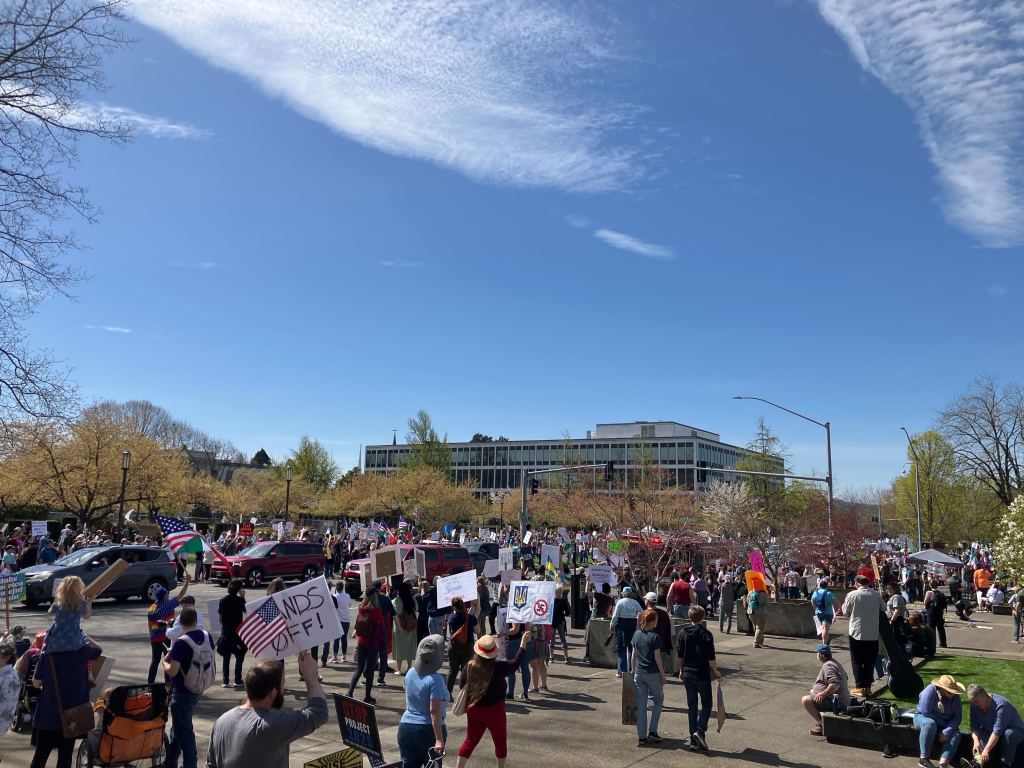 There were many small protests in rural areas and throughout the state. In Salem, the capital, Annon, noted that “Oregon may be a blue state, but it’s really a few large blue city islands in a sea of red,” and the far-right have a large presence. Despite that, there were “easily double past 50501/Indivisible events here” on April 5th. Anon described it as “a much more mainstream or centrist turnout. Much more about Social Security, DEI, anti- DOGE, anti Musk and Trump, quite a few anti-fascist type signs.” There was a broad age mix, and “more than the usual number of military veterans.” Despite a large Mexican immigrant population, there was “a noticeable lack of Mexicans in the crowd,” which was mostly white. While there were fewer Mexican flags than in previous demonstrations, several allies held signs supporting immigrant rights. They were joined by “a similar number in support of trans and LGBT rights, but they are dwarfed by the mainstream crowd.” Perhaps the fear of ICE kept some immigrants away, but mobilization through Indivisible and similar lists might also have bypassed this community. It was still good to see more people getting involved, and to see veterans marching against Trump rather than for him.