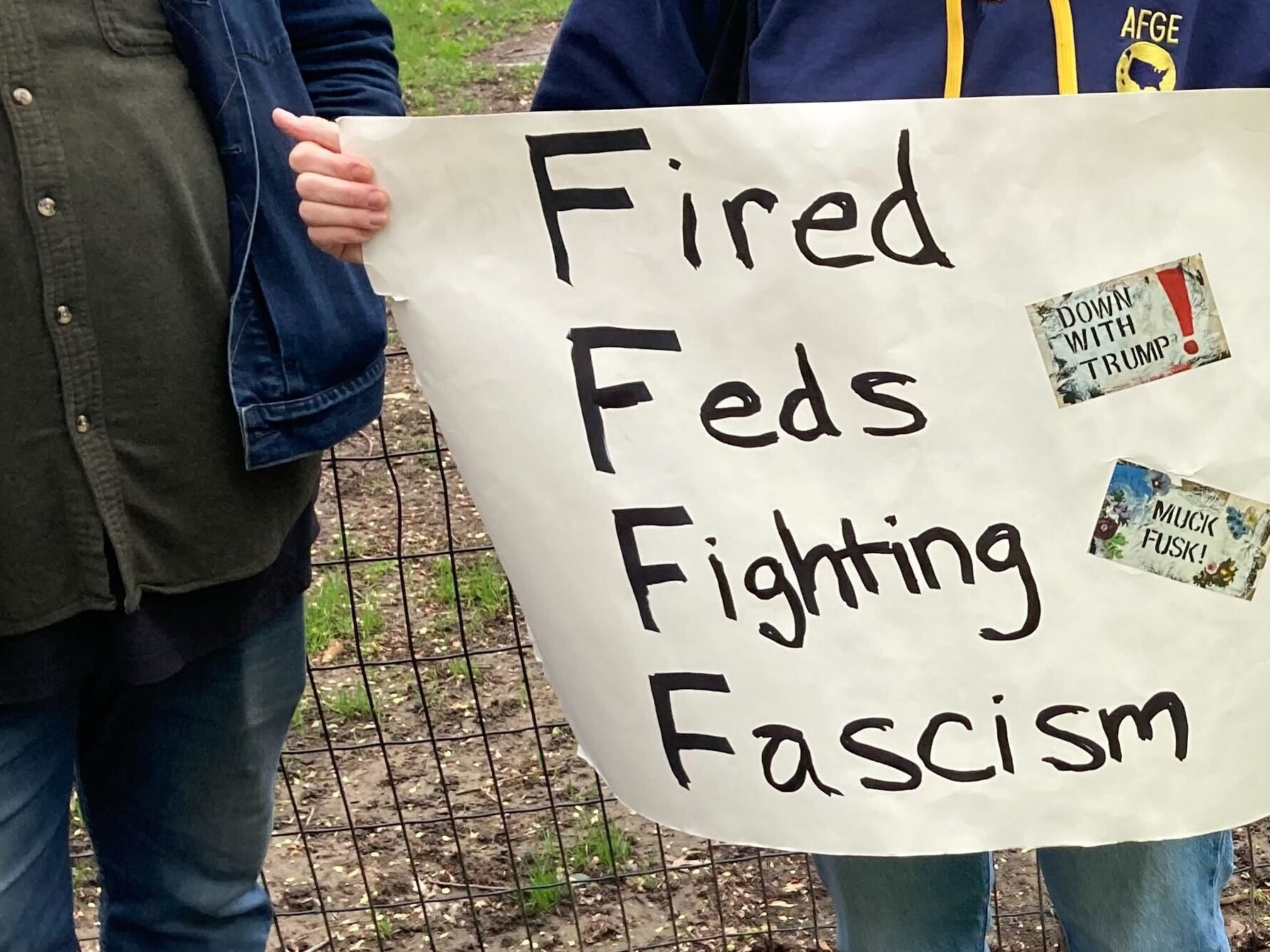 It was obvious that people were worried about jobs and the gutting of all the federal agencies that were targeted because they provide us with much needed assistance. A young woman stood with a sign that said: “Fired Fed Fighting Fascism” explained to the small crowd surrounding her that she had just lost her job at the IMLS, the federal agency that supports libraries, archives and museums. She was happy to see so many people at the demonstration. When asked what her union, the AFGE, was doing, she said she was waiting to hear the outcome of their lawsuit to invalidate the order.